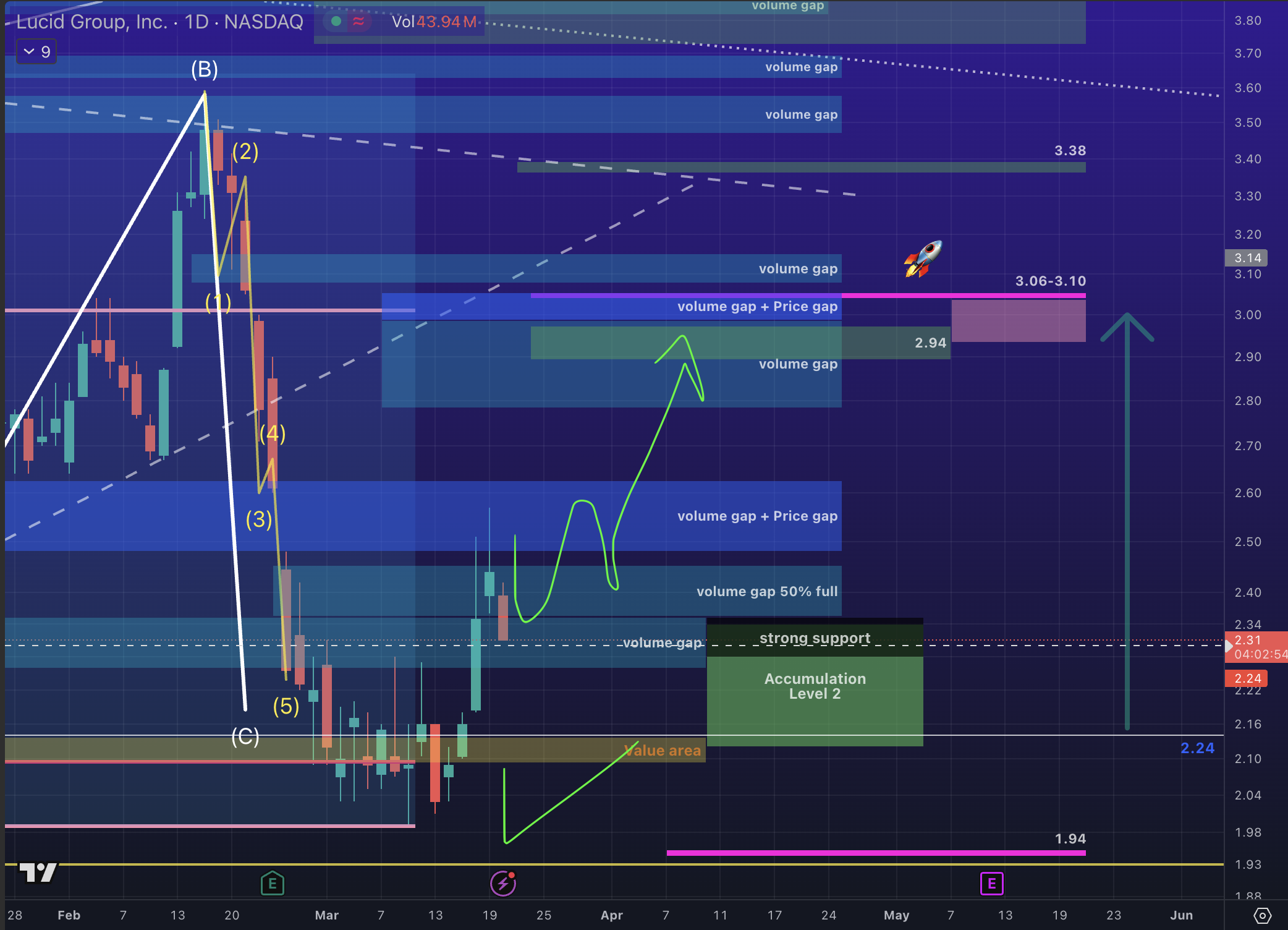 ✅ Major ABC correction confirmed on Feb 5, holding between $2.25 and $2.12. No volume for further drop.