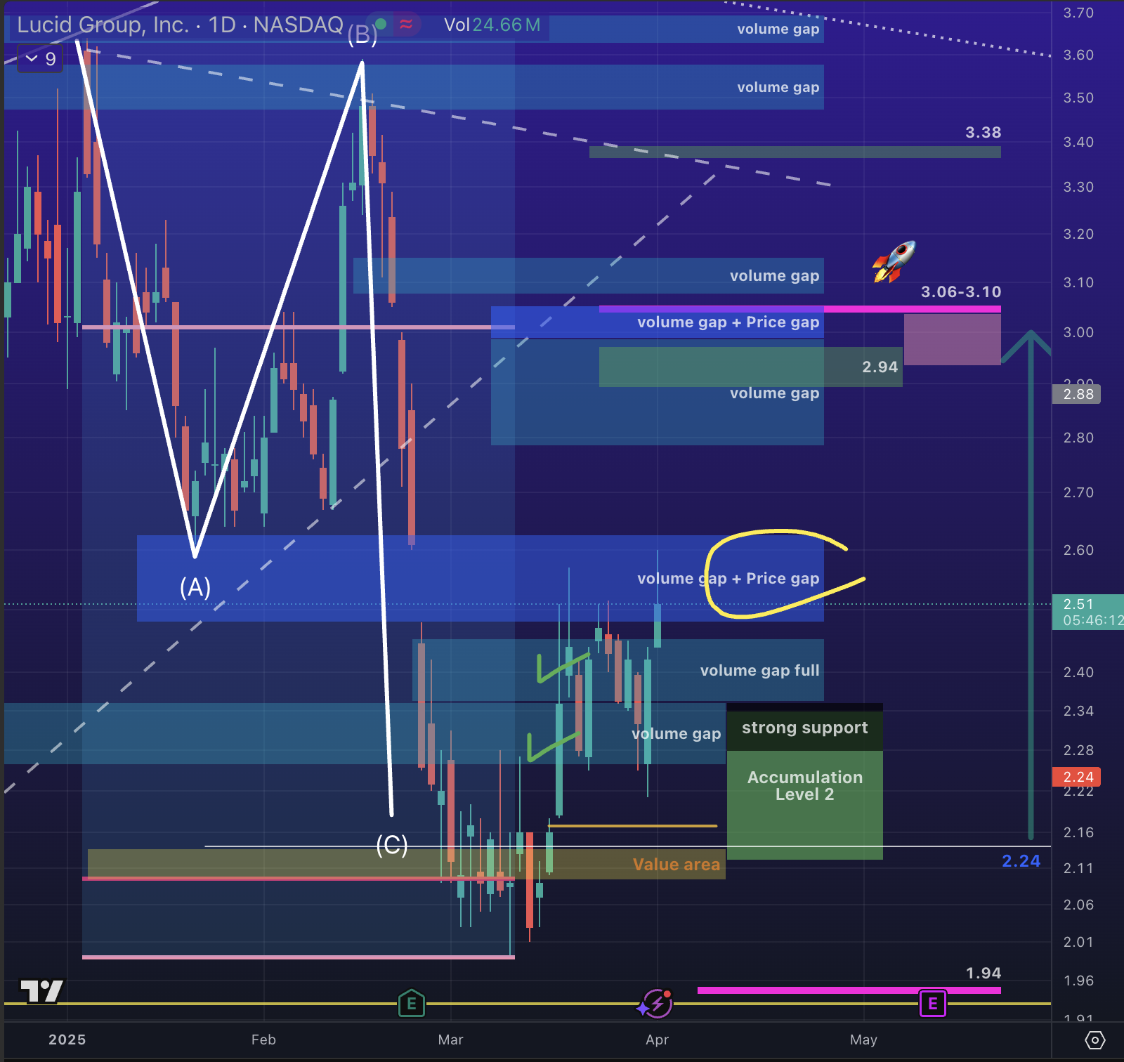 ✅ Major ABC correction confirmed on Feb 5, holding between $2.25 and $2.12. No volume for further drop. this correction is now completed.