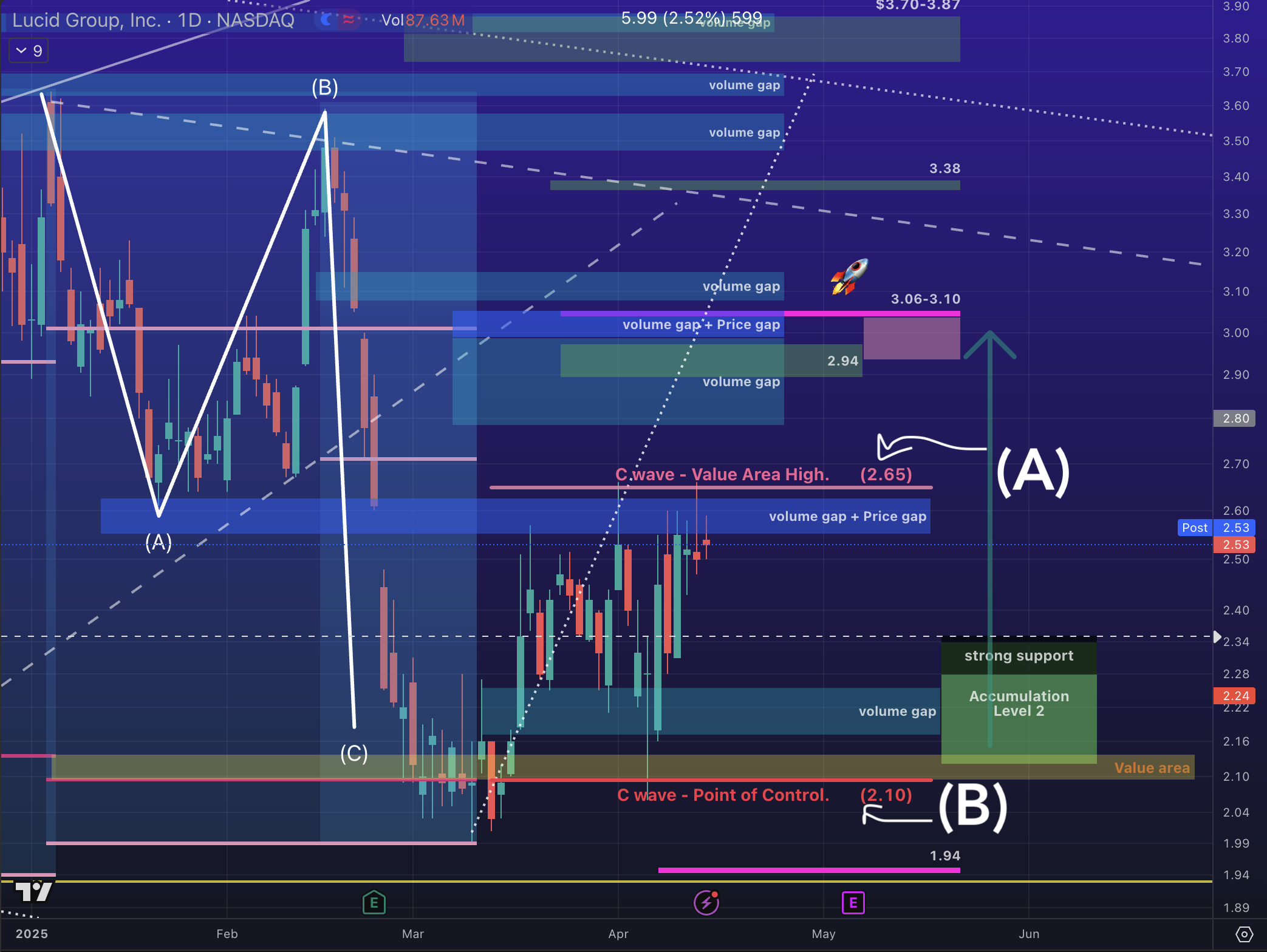 ✅ Major ABC correction confirmed on Feb 5, holding between $2.25 and $2.12. No volume for further drop.