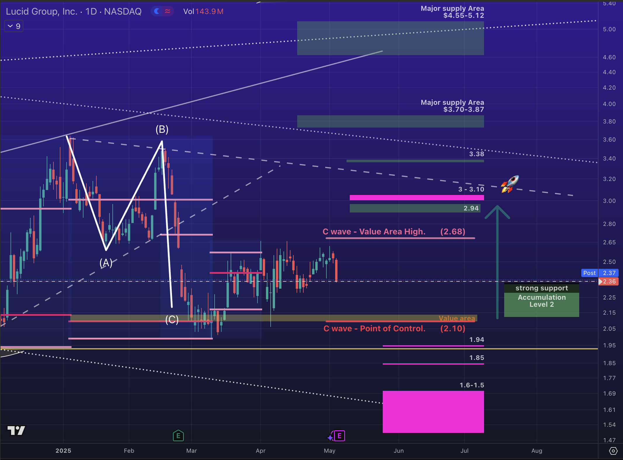 ✅ Major ABC correction confirmed on Feb 5, holding between $2.25 and $2.12. No volume for further drop.