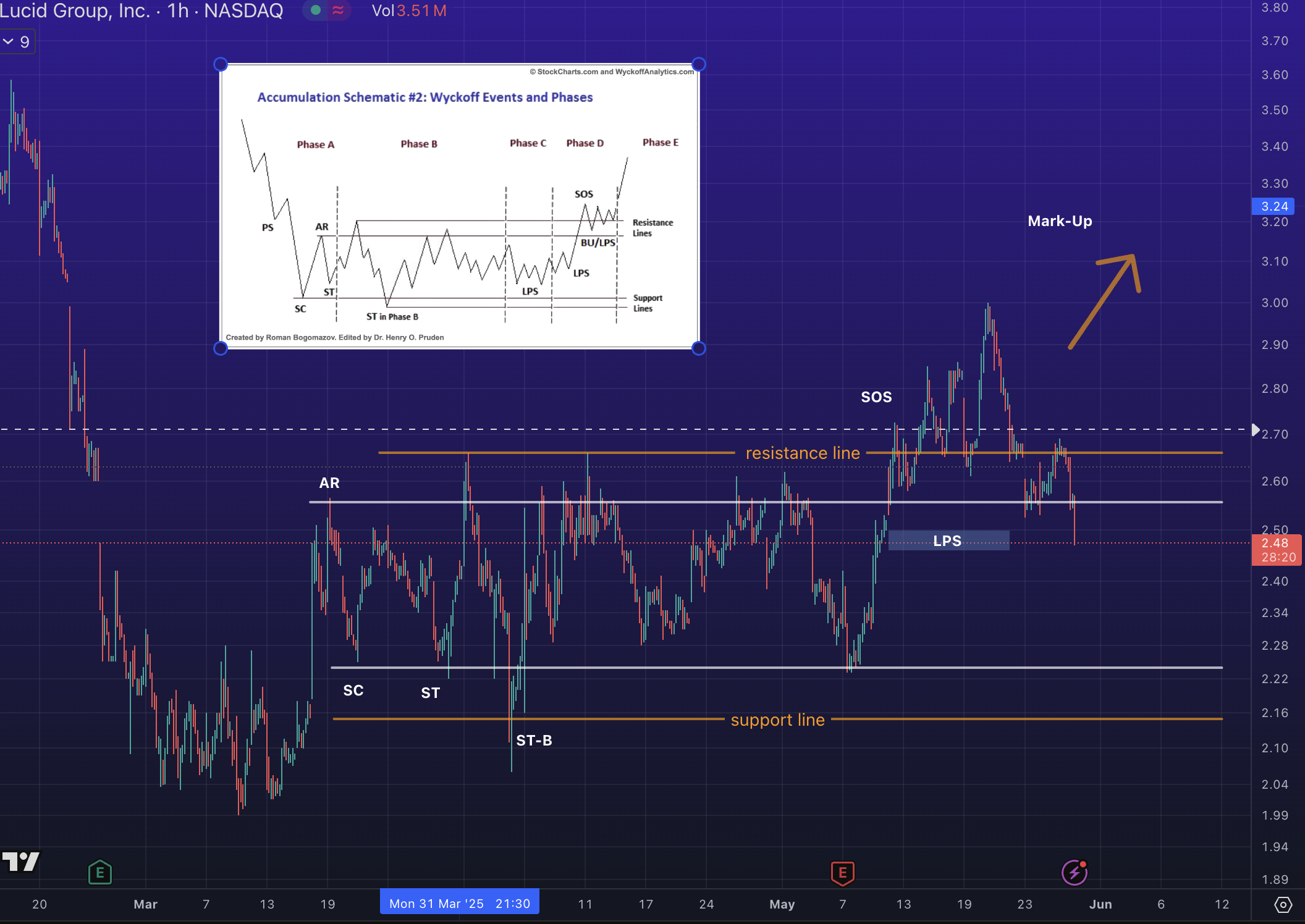 ✅ $LCID stock in accumulation structure since past 27 February. No major breakout yet!